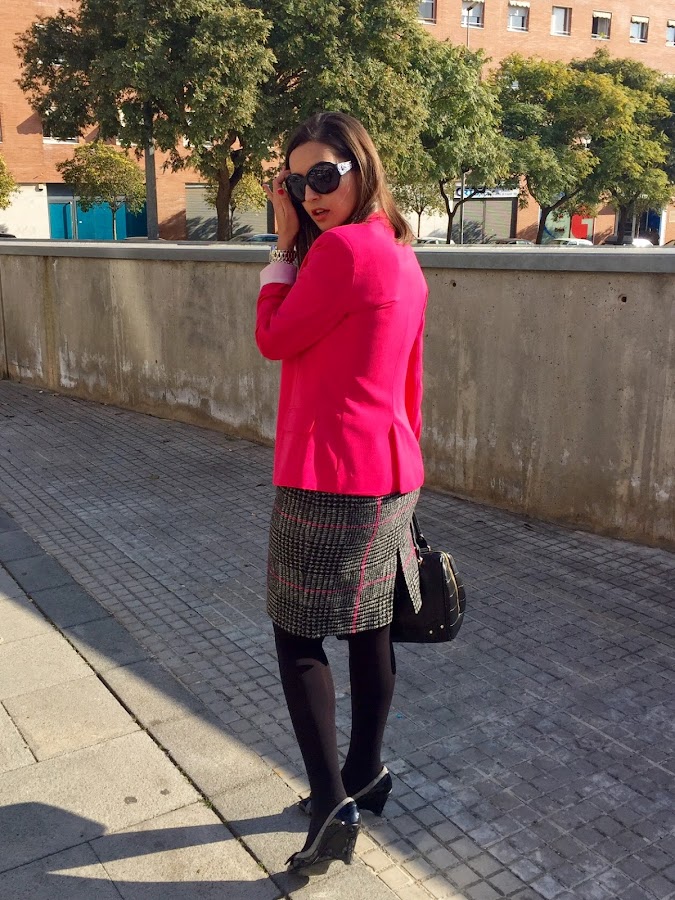 !Buenas noches sweeties! Como cada miércoles os traigo un nuevo look perfecto para ir a trabajar, y en este caso, con mucho color, porque aunque estemos en invierno, no siempre hay que ir de negro. En el look de hoy llevo vestido de cuadros con corte lady, que me parece siempre una de las opciones perfectas para ir a trabajar, con americana en fucsia. Los complementos del look en negro, para destacar más la americana.
