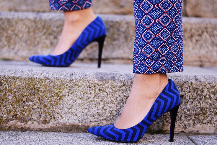 Striped sweater: Shein Pantalones geométricos: Zara Bolso: Zara Tacones: Mango