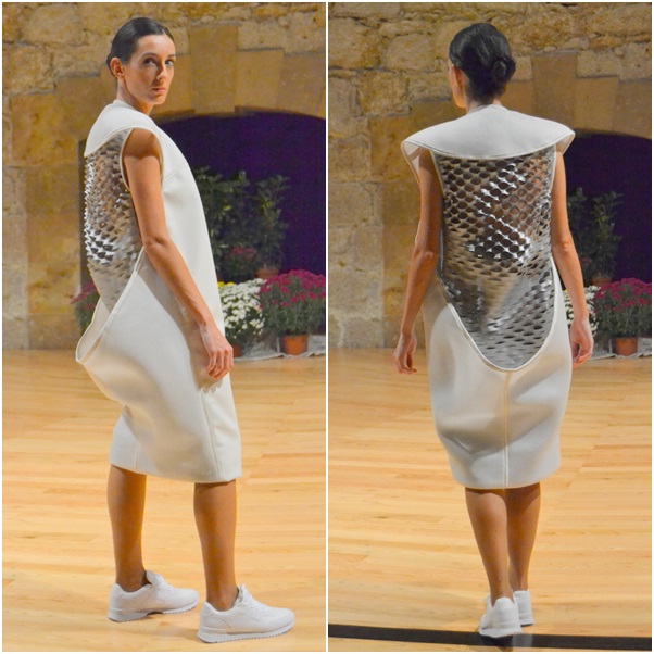 ELENA TORRECILLA: "DISTORSIÓN". Ganadora del certamen. Una colección en la que se mezclan texturas con volumen propio consiguiendo un efecto de luces y sombras y con cortes rectos y asimétricos.