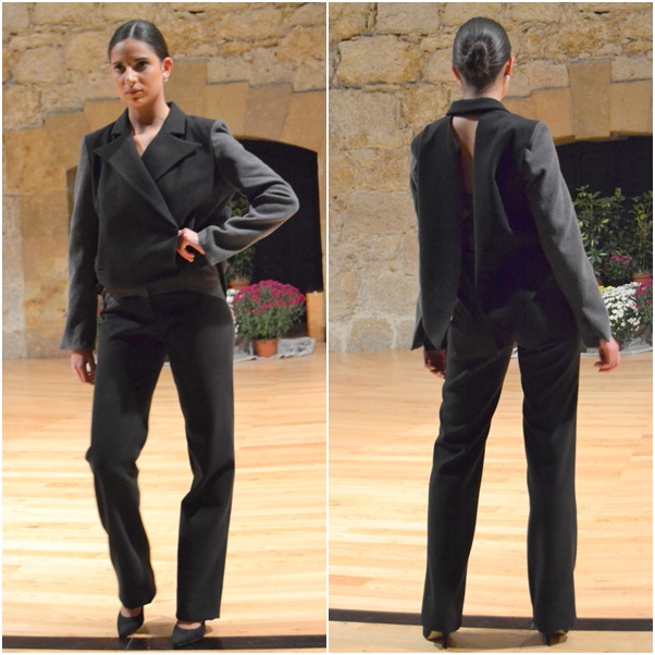 PAOLA SANTÍN: "WALL STREET". Se inspira en la forma de vestir de los hombres de Wall Street y con ella representa a la mujer que mezcla en su estética lo masculino y femenino.