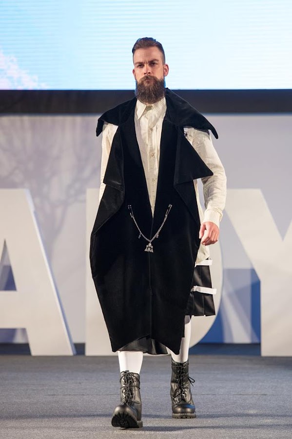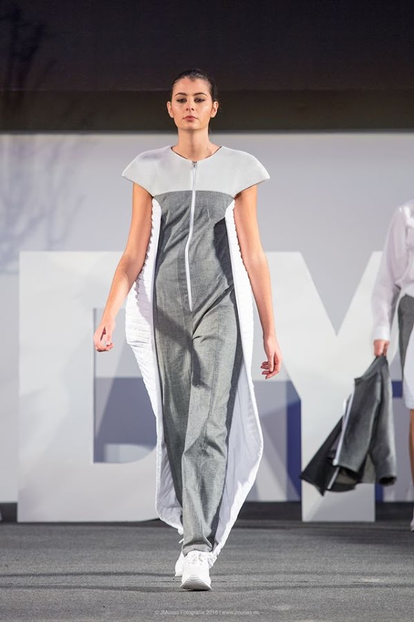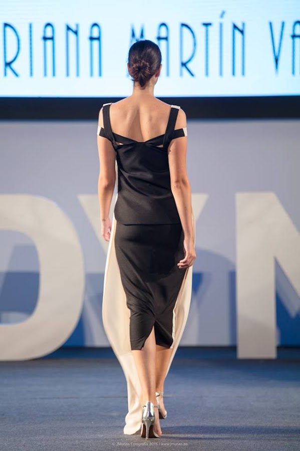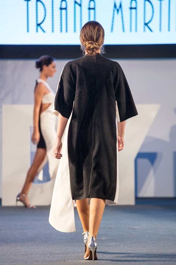 Triana Martín Valdés: TWO BE. Ganadora del Certamen. Triana, estudiante del 4º grado de Diseño y Moda en ESNE presentó una colección en blanco y negro que representaba la dos caras del ser humano, como las personas cambian su forma de ser en función del entorno.