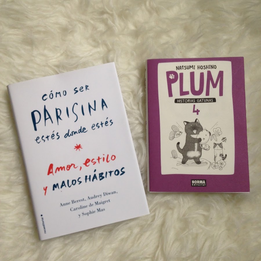 Libros "Como ser parisina estés donde estés" y "Plum historias gatunas 4".
