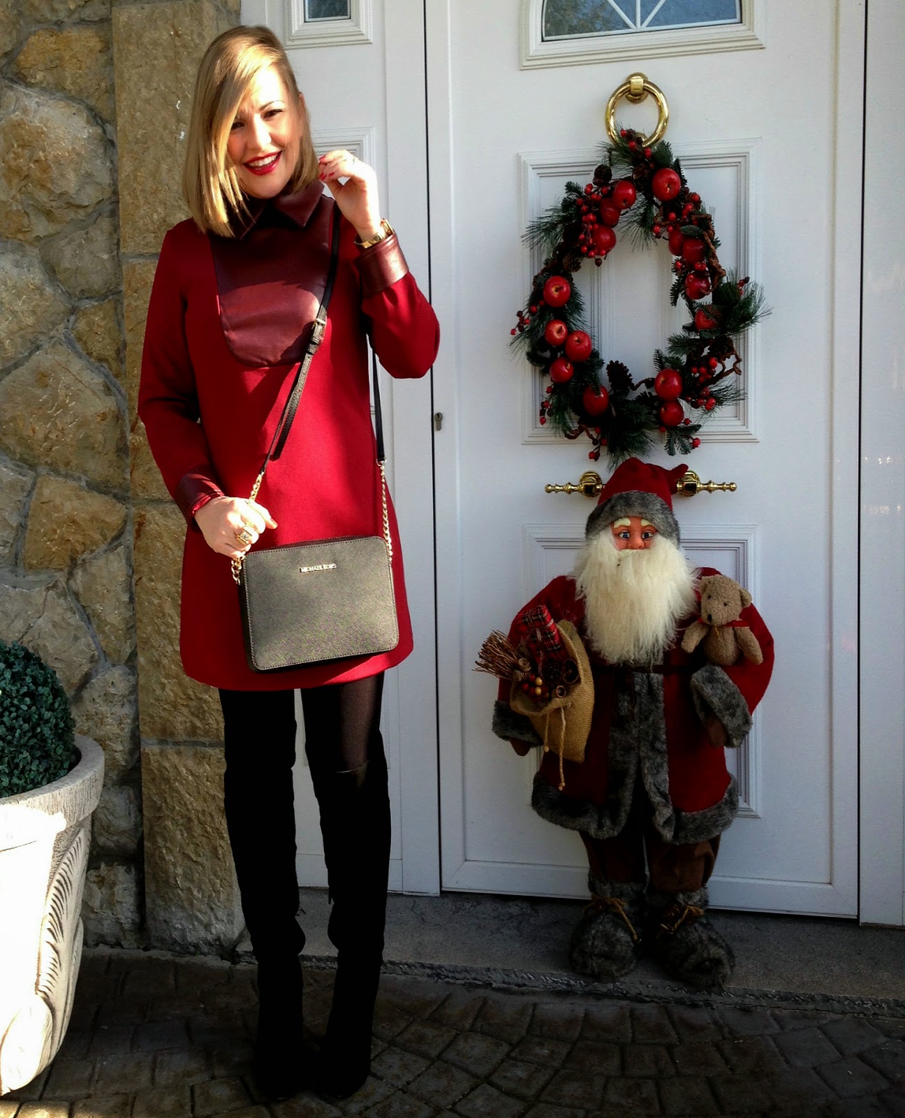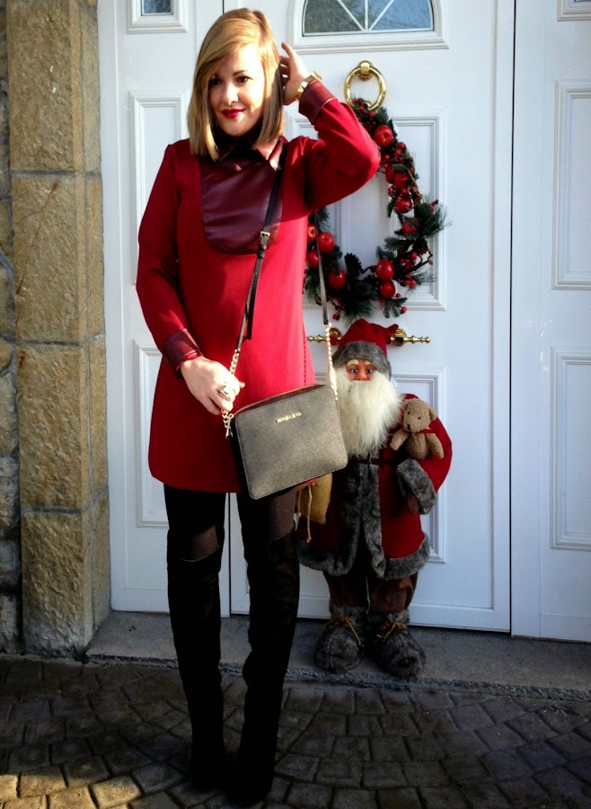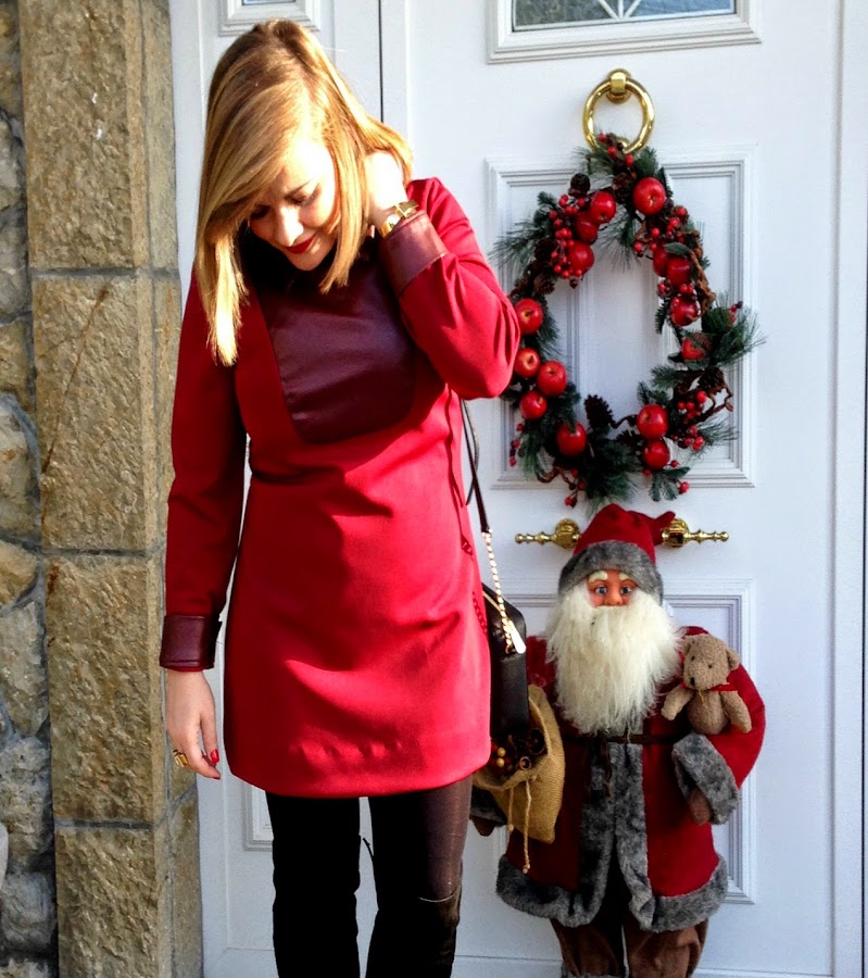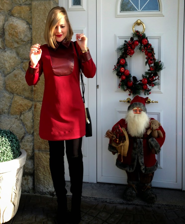 Esta vez elegí un vestido muy apropiado para la época. Su color me pareció perfecto para la comida de Navidad. Lo combiné con botas altas y mi bolso preferido que utilizo tanto para looks sport como para este mas elegante.