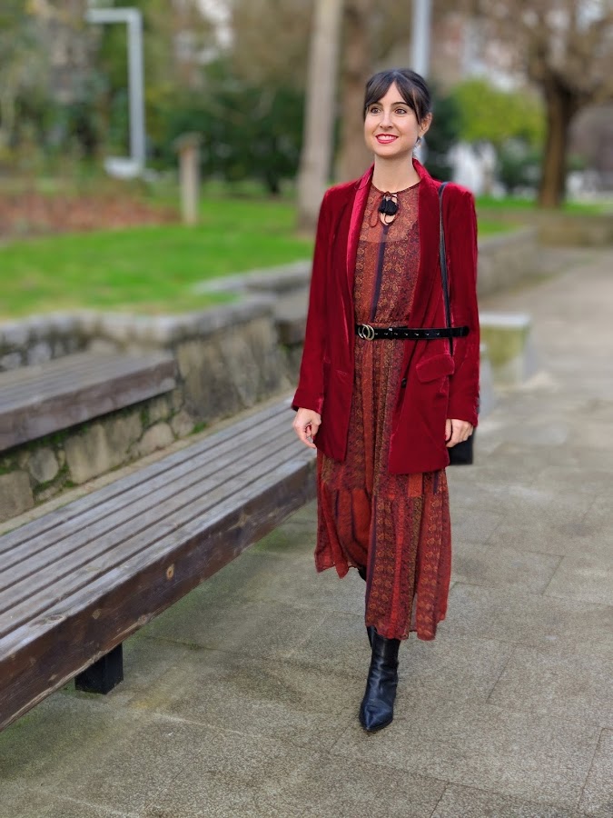 Blazer y vestido: Mangooutlet / Botines: Zara