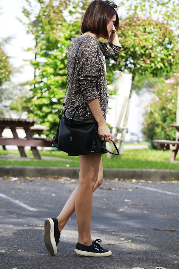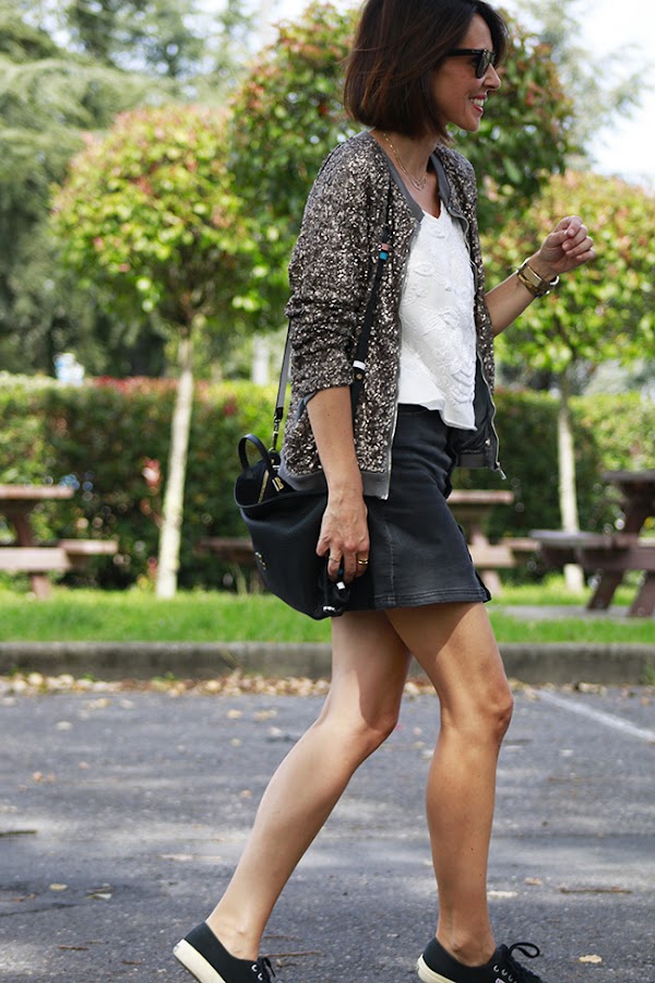 Os cuento la historia de este look. Hace algún tiempo, este look sin duda, me lo habría puesto con tacones. La chaqueta con lentejuelas, y si las lentejuelas son de fiesta, en los pies me pongo tacones. Sin embargo, después de probar el look con todos mis zapatos un poco más finos no terminaba de verlo, no me cuadraban ningunos! En una esquina me miraban las Superga pero no quería verlas ¿cómo iba a meter ese calzado en este look? Cuando desistí con los zapatitos decidí probar nuevas opciones y las cogí. El resultado me gustó, me gustó más que ninguno y encima era el más cómodo! (y teniendo en cuenta que me iba a hacer compra más me valía la comodidad!).