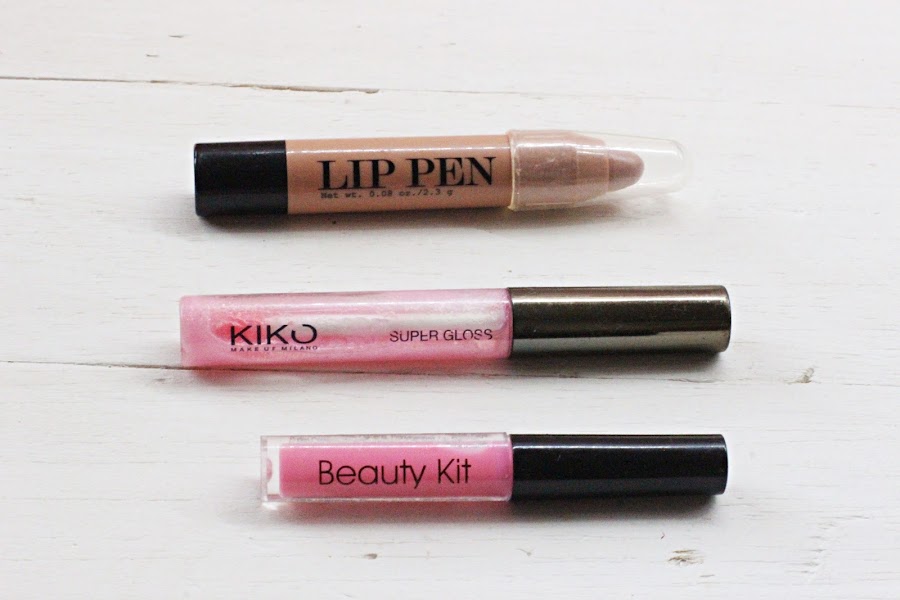 Estos labiales/glosses los tiro porque estarán ya caducadísimos. El de Kiko y el de Beauty Kit no se ni la de años que tendrán, pero no me gustaban nada porque eran muy pegajosos. El de Lip Pen me lo compré en un pack del h&m y en fin, queda exactamente igual que un corrector/iluminador, no favorece para nada...