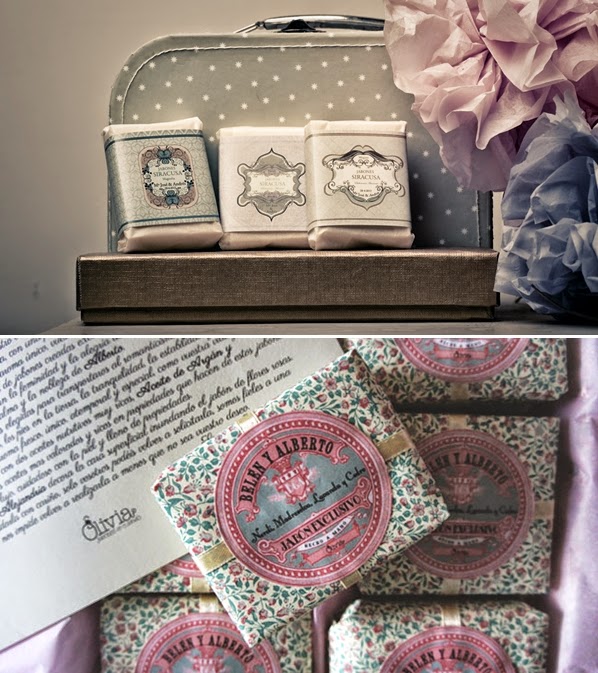 Uno de los regalos que más se ven en las bodas son los jabones de diferentes formas, colores y olores, es decir 100% personalizados para el evento. Un regalo perfecto para dar a las invitadas. Hay muchas empresas dedicadas a la elaboración de estos productos artesanales como La Pompa que Ríe o también Oh! Jabón.
