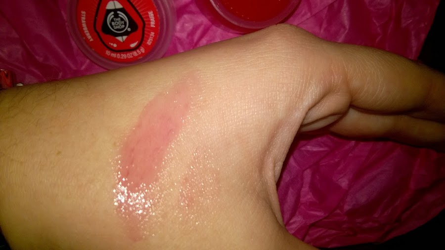 El siguiente producto es el bálsamo labial de la línea de fresa Born Lippy. Este producto es un bálsamo para los labios pero que a diferencia de la manteca no penetra tanto; por lo que hidrata las capas superiores de la epidermis. Tiene un olor muy rico a fresa y su textura es bastante untuosa; por lo que cunde mucho con muy poquita cantidad. Da un toque de brillito a nuestros labios dejándolos más jugosos. En mi caso, al ser el de fresa deja un tonito rojizo muy muy suave. Lo puedes utilizar sólo o bien para agregar ese toque de brillo a tu pintalabios favorito. Contiene cera de abejas. Su envase es de 10 ml y su precio ronda los 4 euros. Os dejo unas imágenes para que veáis envase y tono.