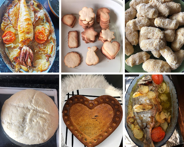 Mi must está cuarentena ha sido la cocina. Soy una persona a la que le encanta comer bien y he tenido abuelas que cocinaban maravillosamente y mi madre también. Lo hace todo bien de lo salado a lo dulce así que, ¡Manos a la obra! a aprender de la mejor. ¿Qué he hecho? croquetas, galletas, bizcocho de zanahoria, pescadito al horno, calamar al horno, pan casero (tenéis la receta en mi IGTV), albóndigas, pechugas rellenas, lomo rizado y espero seguir aprendiendo muchas cosas más. Me encantaría poder dejaros todas la recetas por aquí pero necesitaría un post entero para cada una.¡Mirad que pintaza todo!