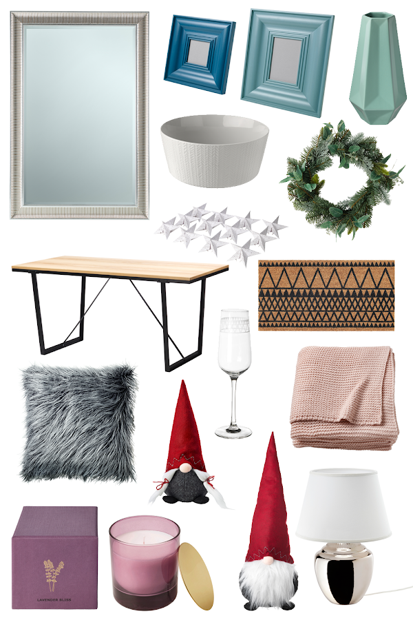 espejo SONGE - 69€ | marcos de fotos SKATTEBY - 17,99€ | florero LIVSLANG - 7,99€ | fuente VINTER 2017 - 14,99€ | corona SMYCKA - 14,99€ | guirnalda de estrellas STRALLA - 7,99€ | mesa de comedor VASSAD - 109€ | felpudo VINTER 2017 - 7,99€ | copa de cava VINTER 2017 - 2,50€/unid. | cojín peludo VINTER 2017 - 14,99€ | decoración Papá Noel 32cm VINTER 2017 - 7,99€ | decoración Papá Noel 75cm VINTER 2017 - 19,99€ | manta INGABRITTA - 29,99€ | vela perfumada NJUTNING - 9,99€ | lámpara de mesa RICKARUM - 39,99€