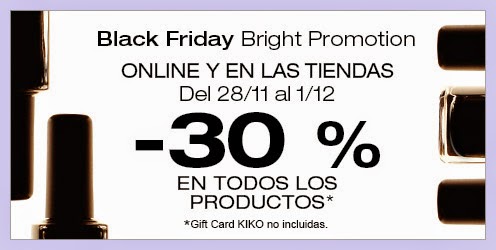 30% de descuento en todos los productos (exceptuando la Gift Card KIKO)
