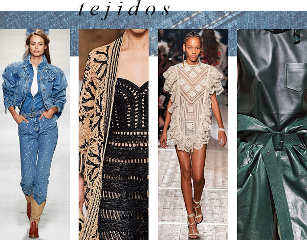 Denim (Philosophy di Lorenzo Serafini) Artesanía (Oscar de la Renta) Crochet (Isabel Marant) Cuero (Givenchy)