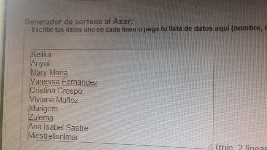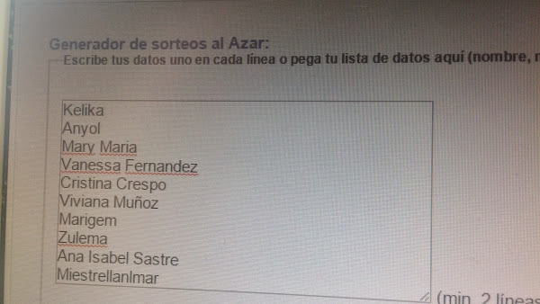 En un primer momento puse todas las participantes, (empezando por Kelika...) y sólo Eneri había realizado los pasos para conseguir más participaciones que explique en un post posterior, (en su caso tres participaciones), y el resultado fue el siguiente: