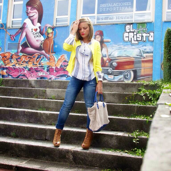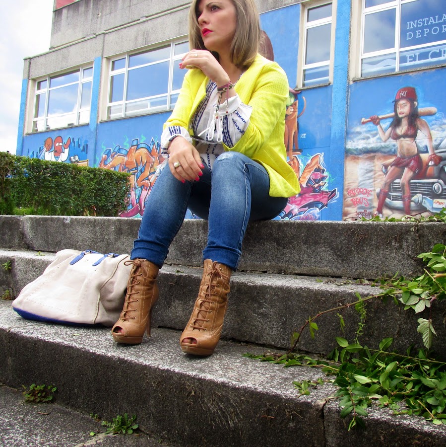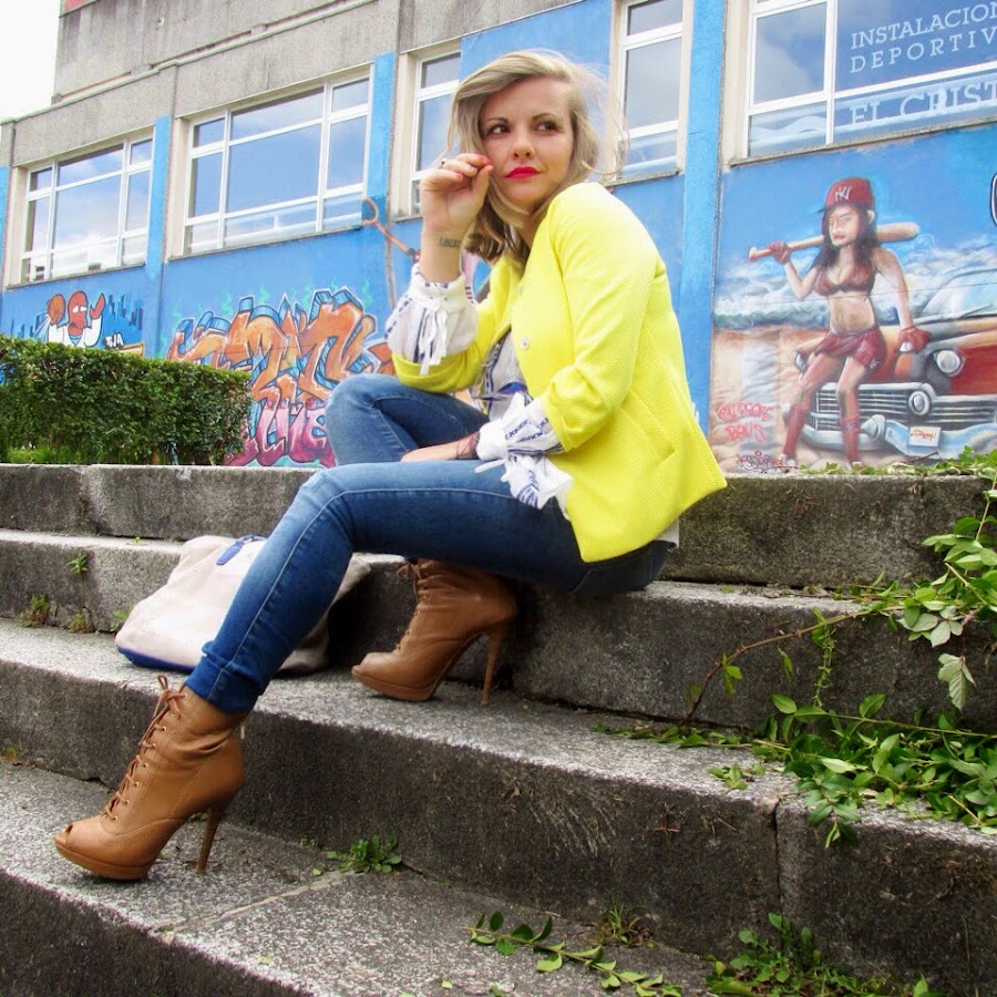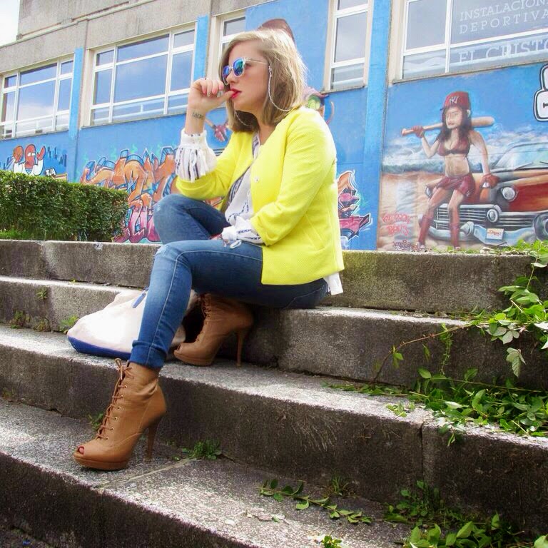 Nunca he tenido ninguna prenda de este tono, normalmente con el amarillo limón me veo un poco "pollito", pero tengo que decir que ésta chaqueta me encanta y así combinada con tonos azules y blancos me resulta favorecedora. Creo que también quedará genial con un total look en negro, ya tengo en mente una combinación que pronto os mostraré.