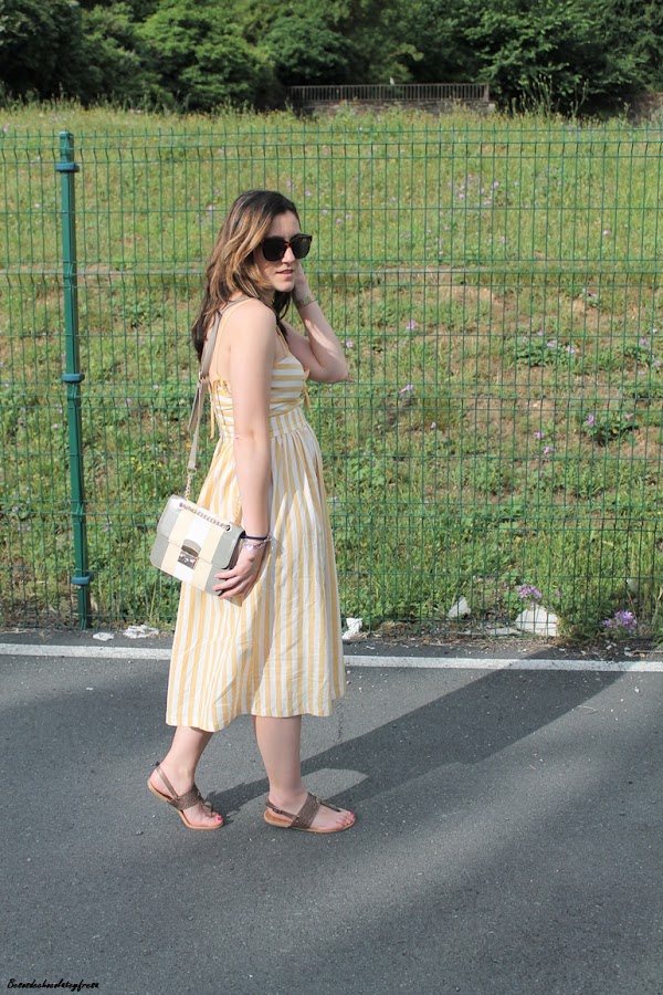 Si a las rayas le añadimos el tejido de lino, super fresco y cómodo para las altas temperaturas, tenemos la prenda perfecta, como es el vestido que os enseño hoy con estas dos tendencias. Sencillo, discreto y muy fresco, perfecto tanto para un look working o playero, solo sería cuestión de cambiar los complementos y calzado.