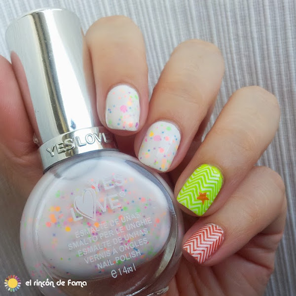 ? Para la base: blanco de Easy Paris (una capa), Neon Glitter G1-2 de Yes Love, Nº524 y Nº516 de Leticia Well