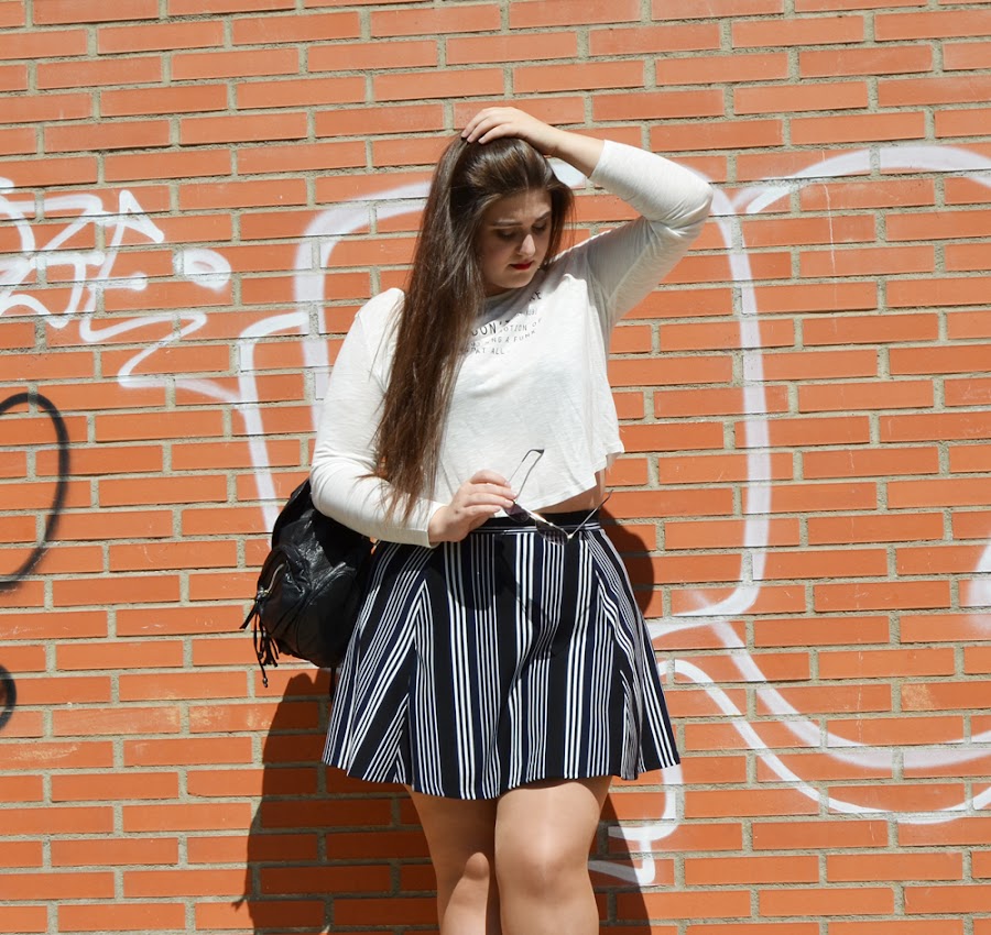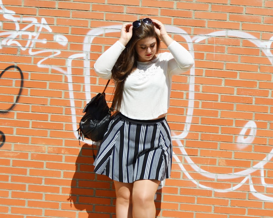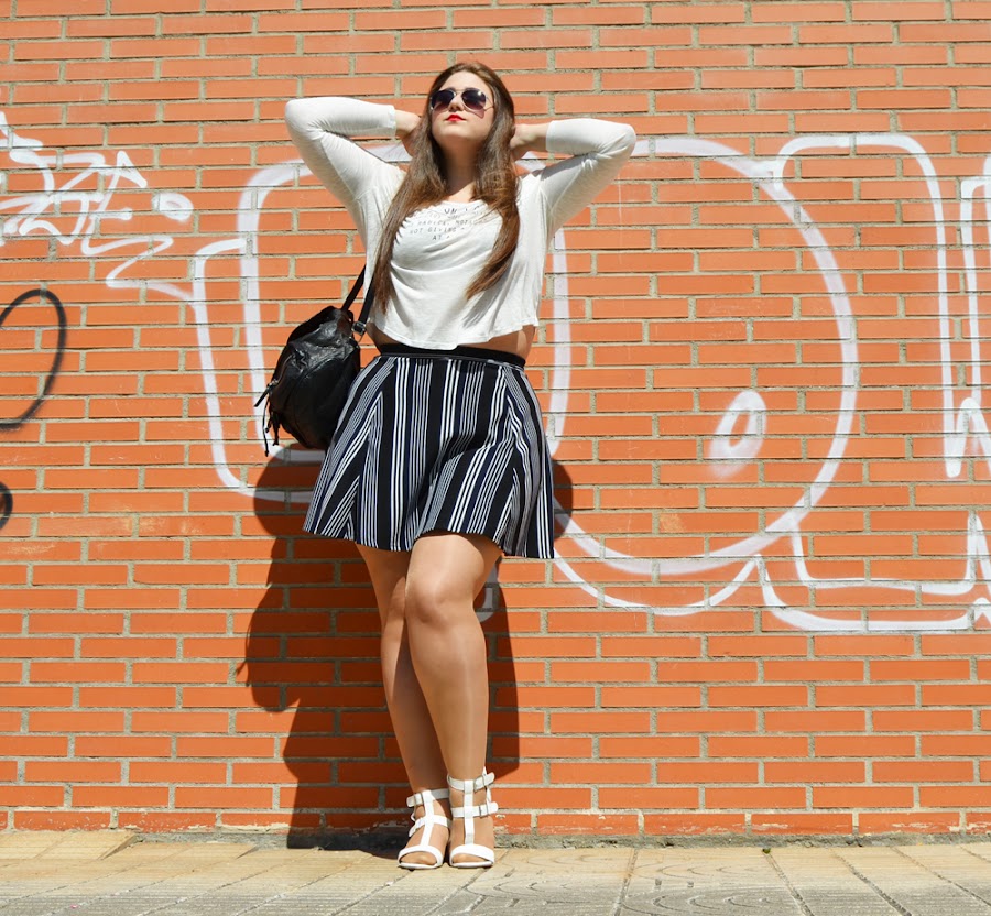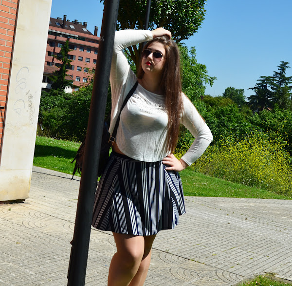 Por suerte esta semana pasada, pudimos tener algunos soleados y aproveché para estrenar esta falda con la que me hice hace un par de semanitas, en H&M. Me encanta!! Y las rayas creo que son un básico también para el verano. Siendo sincera, con las rayas horizontales en la zona de abajo no me siento demasiado favorecida y salvo ocasiones especiales en las que me siento como si me importase mas bien poco, no lo uso.Pero... las rayas verticales es otro cantar totalmente diferente. Ya que siento que estilizan mucho mas. Nos hacen parecer mas altas y vale que eso no me haga mucha falta porque soy alta ya, pero hey, me encanta igualmente.