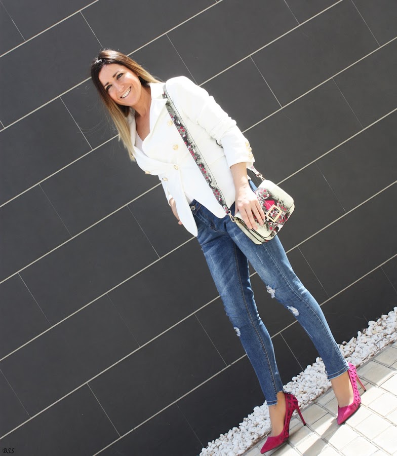 Hoy mi propuesta es gracias a YOSHOP una fantástica tienda online en la que podéis encontrar todas las tendencias de esta primavera a unos precios increíbles.Esta blazer estilo marinera se ha convertido en una de mis prendas favoritas esta primavera. El precioso toque del bolso me parece perfecto para resaltar el look con este estampado tan original, que os parece?