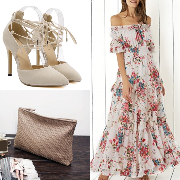 Un look apropiado para ir de cena con nuestra pareja pueden ser los vestidos off the shoulder, que dan un punto elegante y sexy a nuestros estilismos y si apostamos por el rojo y el estampado floral haremos un look vistoso, alegre y bohemio.