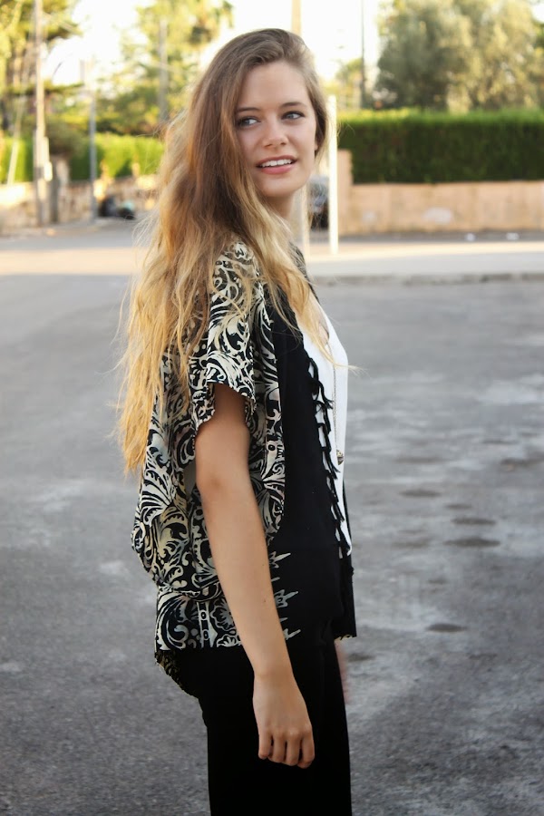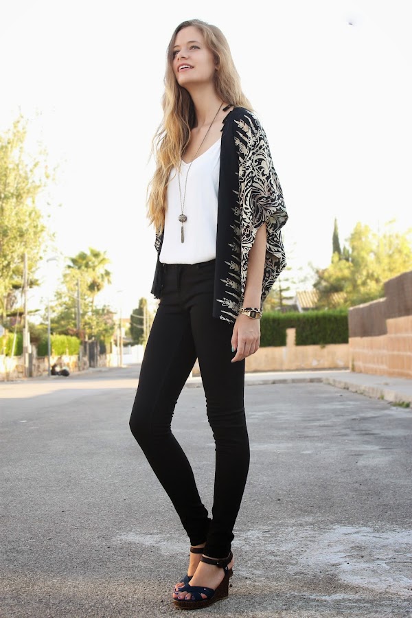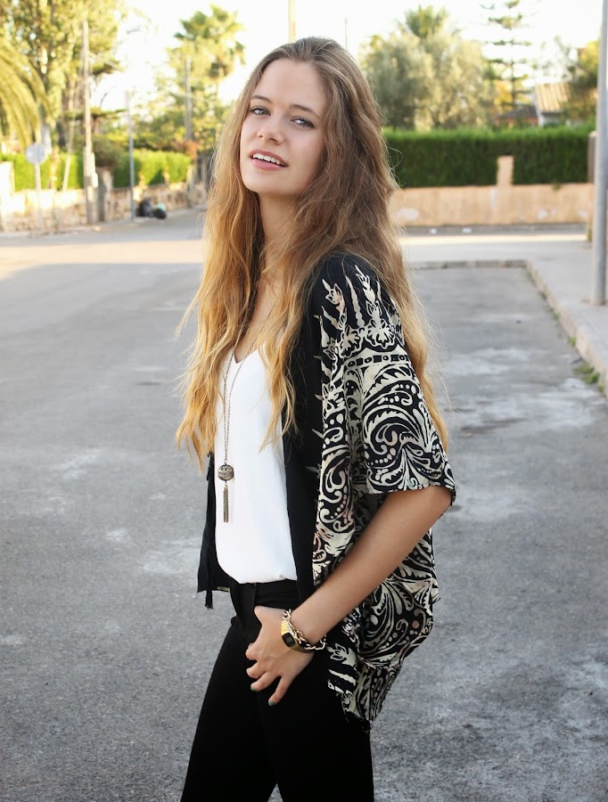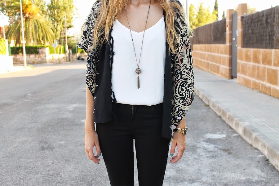 Mi kimono es básico, es el primero que tengo y quería que fuese muy versátil que me combinara con muchas cosas y que no destacara demasiado. Ahora me gustaría tener uno con flecos y más llamativo...