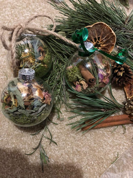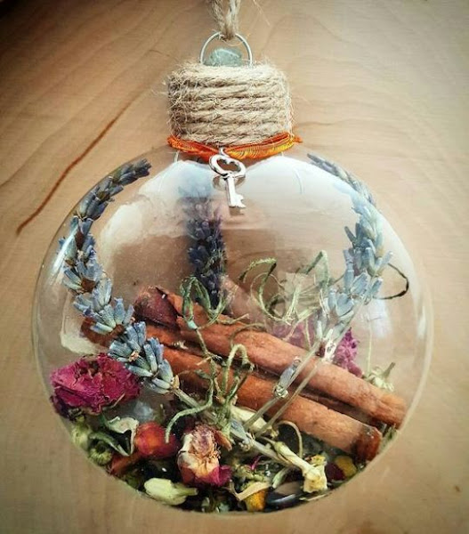 También se puede personalizar una bola o botellita de cristal y añadirle las ramitas de canela, las hojas acebo o muérdago, unas ramitas de abeto, corteza de pin, cuarzos... y colgarla en nuestro árbol como símbolo de protección.