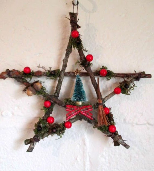 Colgar un pentagrama o estrella de cinco puntas para que la armonía y la paz se queden con nosotros y nuestros seres queridos. La podemos hacer con ramas de algún árbol de hoja perenne o con ramas de canela y adornarla con ramitas de abeto, piñas, acebo...