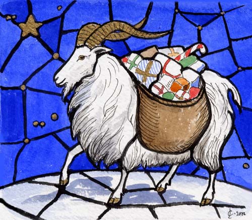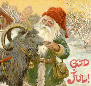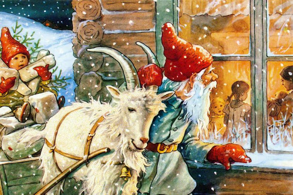 En Finlandia, con el paso de los años, esta cabra fué convirtiéndose en un abuelo que llebava regalos durante los festejos del solsticio, al que