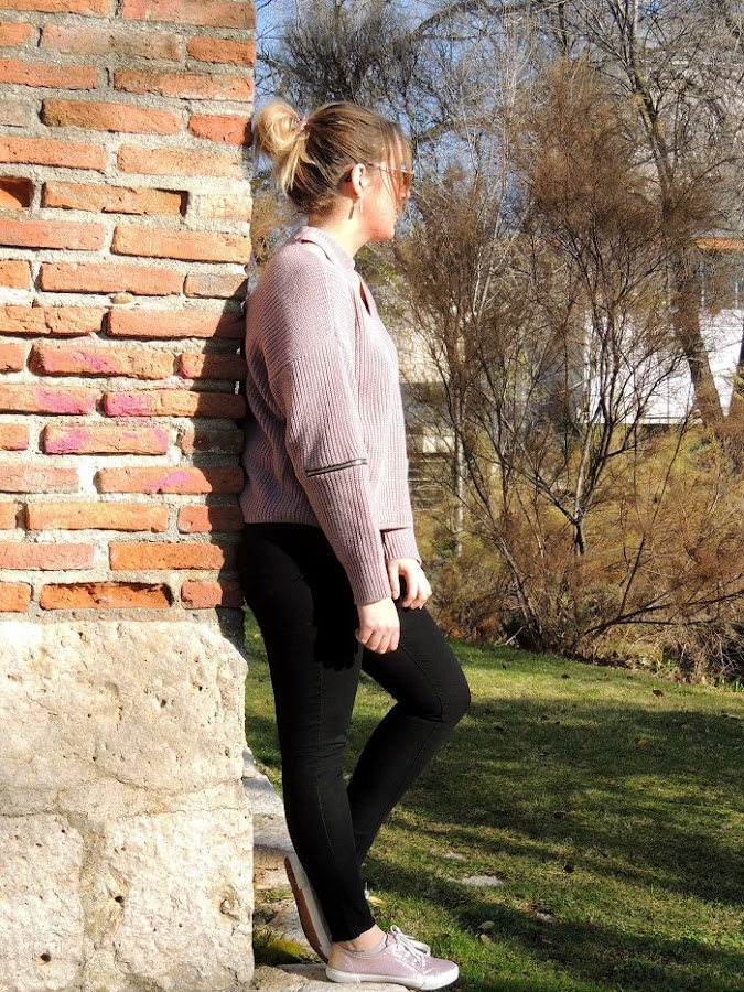 Y ahora vamos a comentar este look, muy amorosos, con un jersey en color violeta, que aún no tenía ninguno en este tono, además viene con el efecto de choker incorporado que ni falta hace decir lo de tendencia que está, un jersey oversize con cremalleras en cada manga que le dan otro rollo no necesita nada más que unos pitillos negros y bambas metalizadas para un día de compras navideñas (como me guuusta). Espero os guste, nos leemos y...¡Feliz año nuevo bombones!