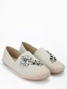 Faux Crystal Embellished Loafers - Apricot
