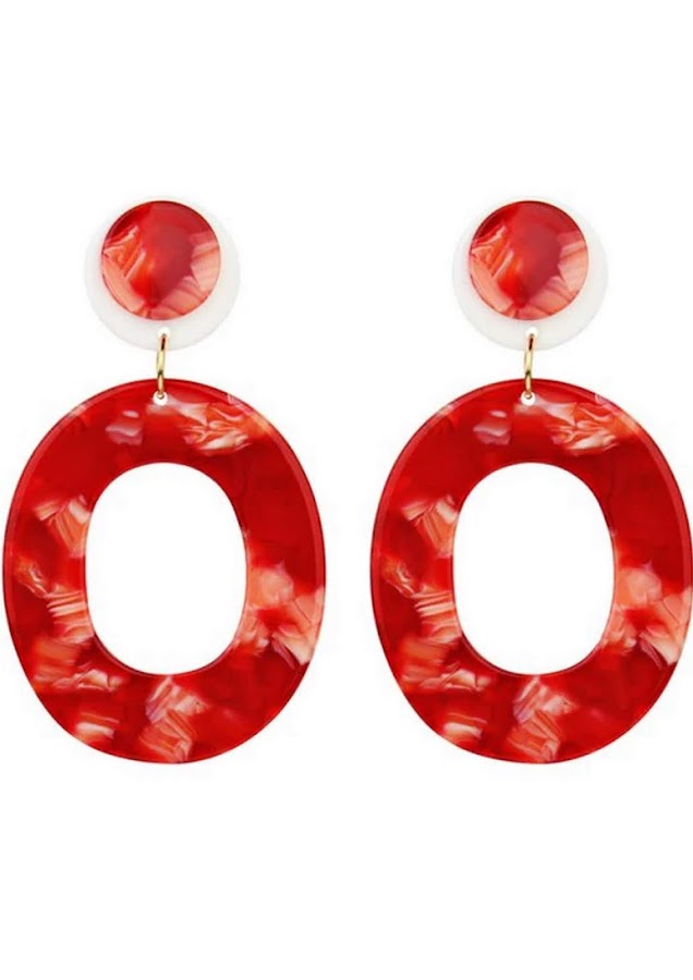 Acrylic Oval Vintage Drop Earrings - Red