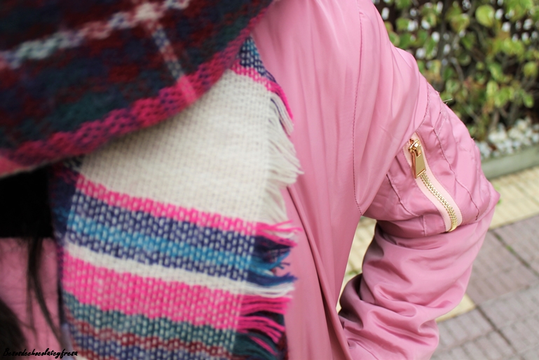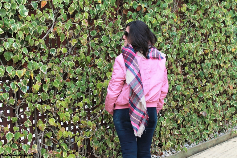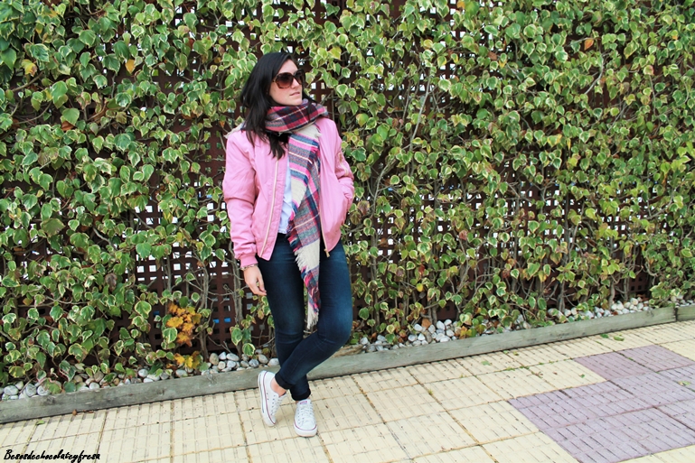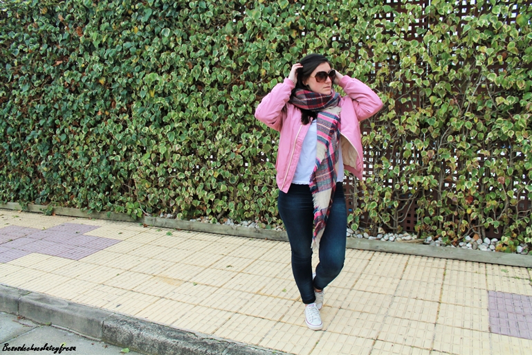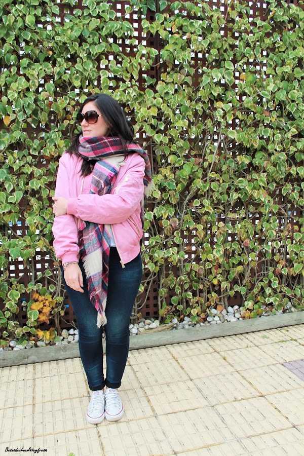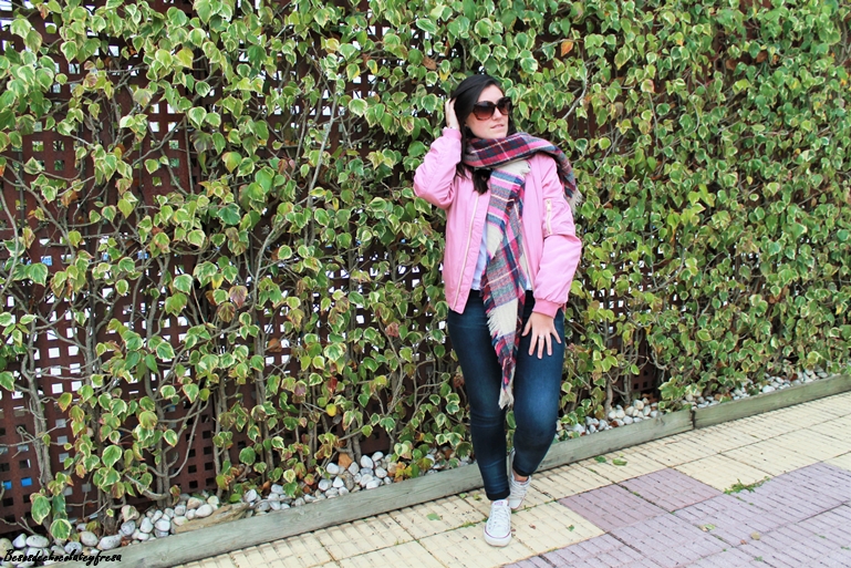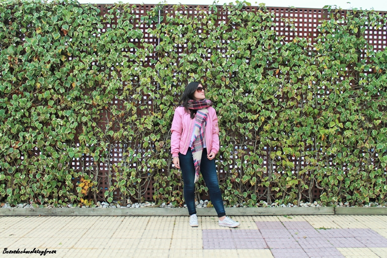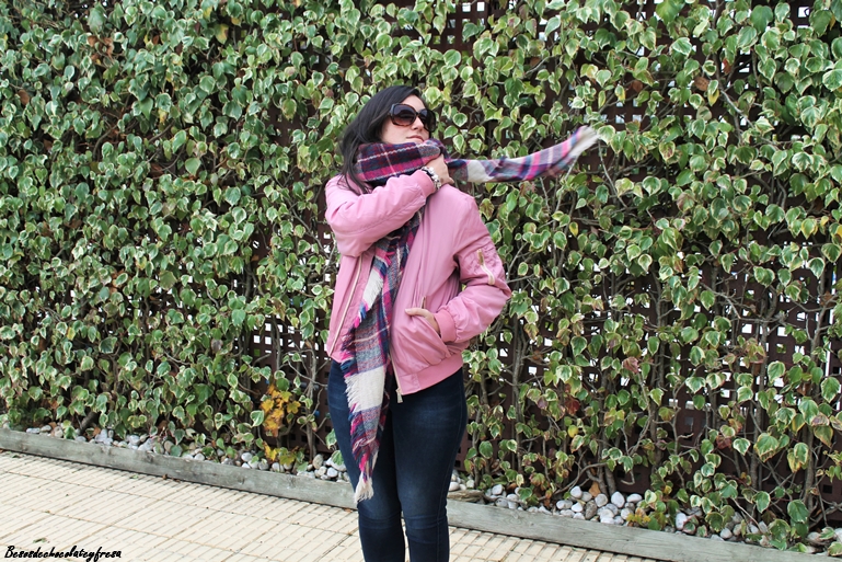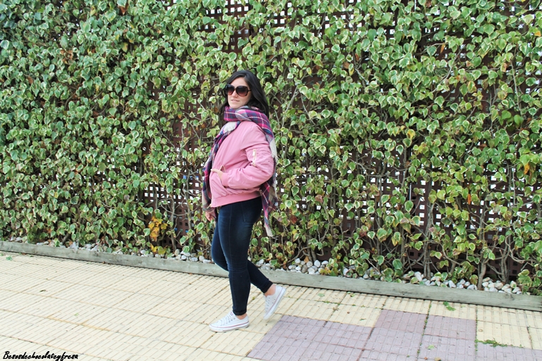 Hoy toca look con otra de las prendas que me llego de la mano de Zaful, para un día lleno de niebla y fresco. Se trata de una bomber en color rosa con tela brillante, abrigosita como ella sola y con tres bolsillos, dos laterales y otro en la manga.