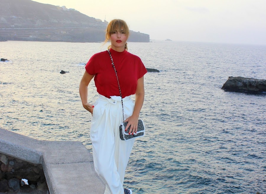 Respecto a mi look de hoy, llevo puesto un pantalón de corte masculino que lo suavizo con una camiseta semi ajustada en el color estrella de la temporada"marsala". Este trench es de el año pasado y viene ideal para la temporada crucero.