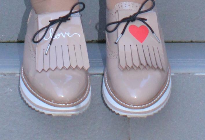 Esta vez me los puse con las solapas decoradas, en las que en una aparece un corazón y en la otra la palabra love ya que el estilo era totalmente casual, combinados con pitillo encerados de color negro y jersey a rayas negras y rojas. Un look muy simple, comodísimo y muy resultón!