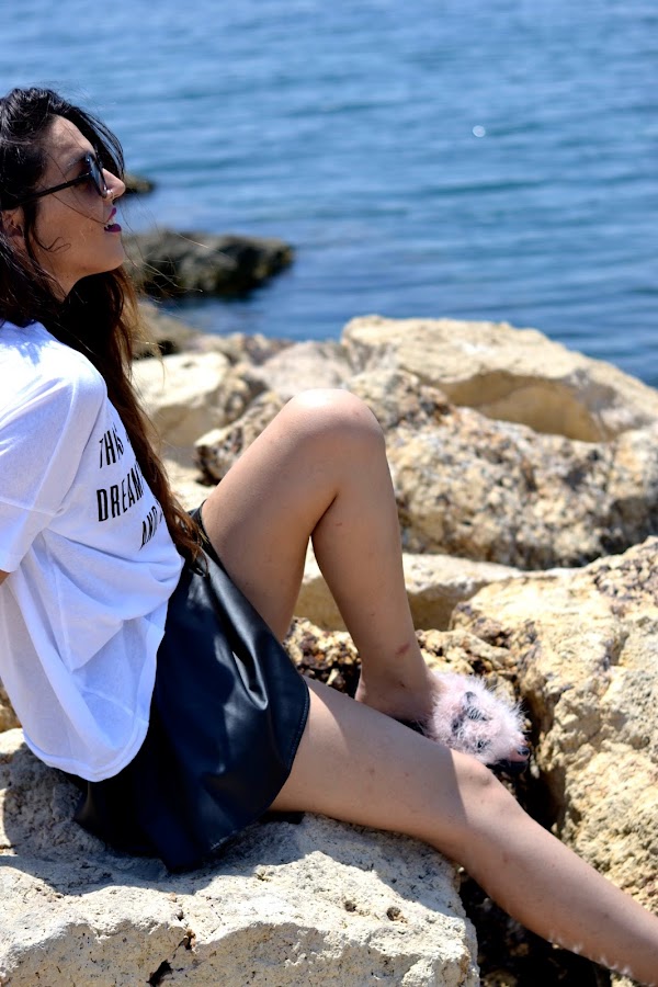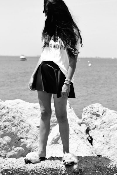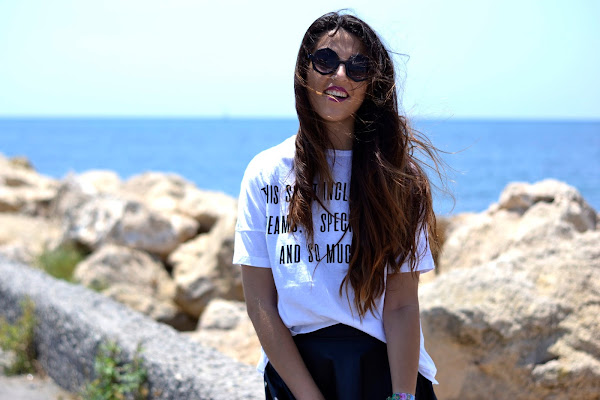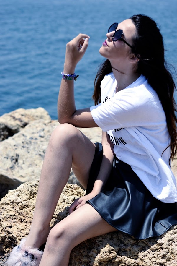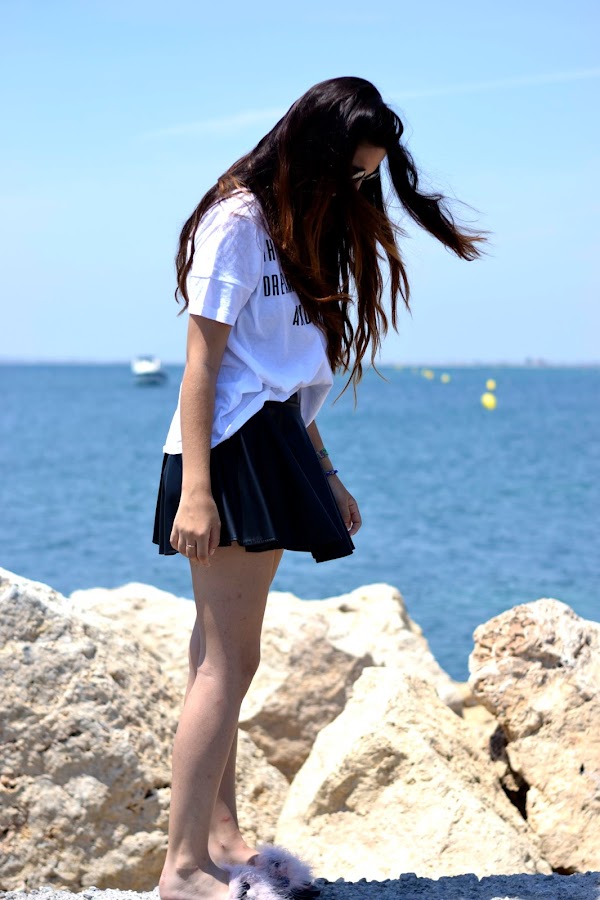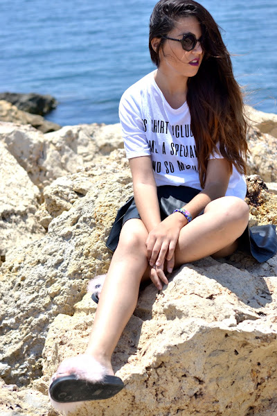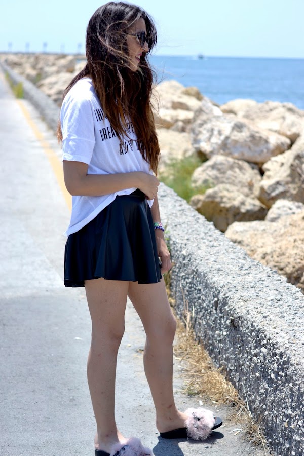 Como soy muy de toques urbanos y grunges, aquí tenéis el estilismo completo, camiseta oversize con un mensaje que me encanta y mi querida rockera falda de cuero con vuelo de Shein, con sus añitos ya, ¡de las primeras compras que hice en Shein!