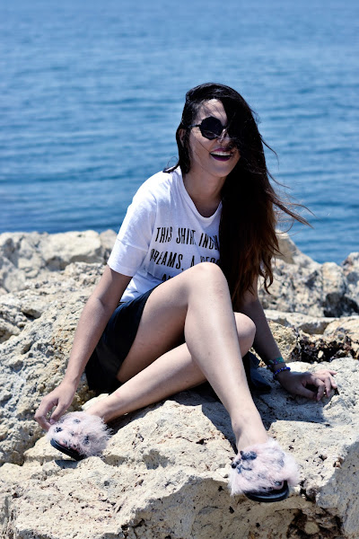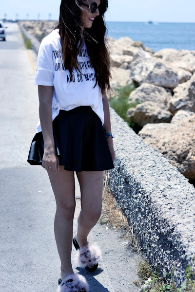 Las "fluffy sandals" son toda una tendencia ahora, que odias o amas, en mi caso ya podéis ver cual es la respuesta. Las tiendas están repletas de este tipo de calzado, algunos más vistosos que otros, y yo como siempre, me decanto por lo más chillón ¿habrá que destacar bien, no?. La historia de estas sandalias es algo graciosa, al menos para mi: estaba loca por hacerme con una de ellas y sólo hacia más que mirar por Asos, H&M... hasta que un día en probadores aparecieron las novedades y entre las de TRFL ¡estaban ellas! y grité ¡Ay, ay, son mías ya! tal cual ví mi talla, las reservé y aquí están, cómodas en mis pies.