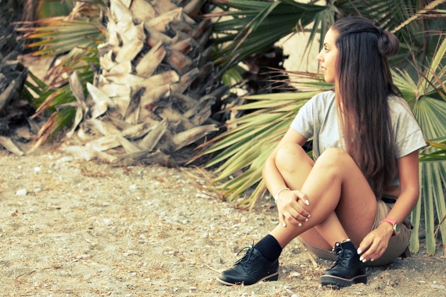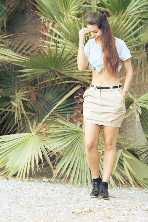 La camiseta es de Mango y por llevarla diferente me hice un nudo en el centro y oye me gustó un montón. La falda es de hace dos años de Pull and Bear he encontrado una similar que os dejaré el enlace debajo de las fotos y los zapatos son de temporada de Bershka. Adoro la ropa masculina y estos zapatos son una monada y muy cómodos. Si os gustan, no dudeis en invertir en ellos, no os vais a arrepentir. Ah! también llevo una pulsera que me regaló mi hermana por mi cumple y que me encantó, la podeis encontrar en cualquier tienda de plata :)