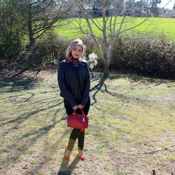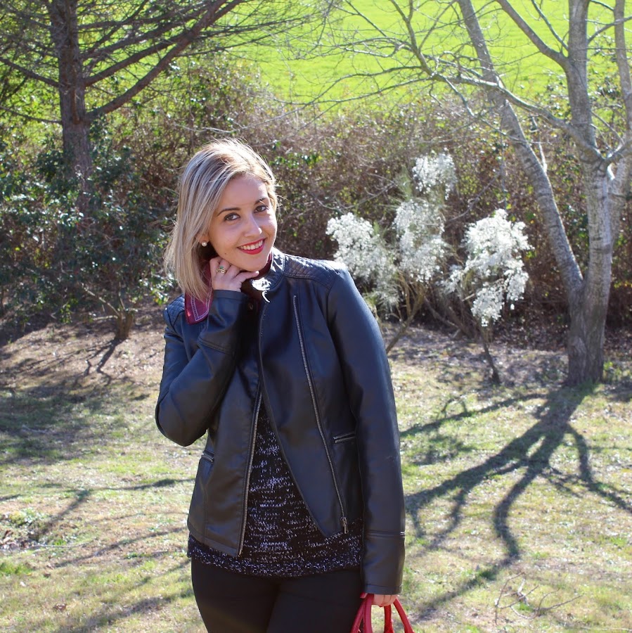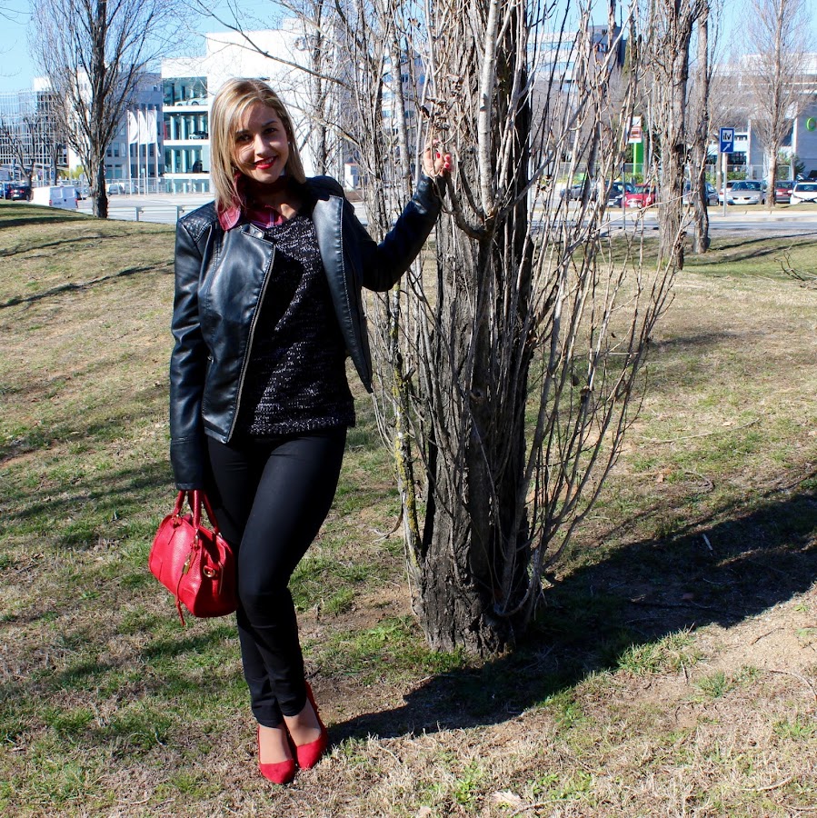 If I tell you that my favorite colour for clothes is black, I know that you dont surprise, because its the basic colour of any closet. In total black outfits, I love wearing accessories with powerful colors as red. In the outfit of the day, I wore my black trousers with a black sweater and a black biker. To give a touch to the outfit, I put my new red shoes that I was searching a lot of time and finally, I found it, my red bag and a red bandana. A rocker and feminine outfit at the same time.