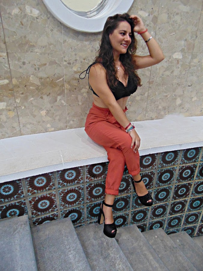 Os enseño un look que me tiene enamorada. Me compré estos pantalones en zara y hacen una figura increible aparte del color que me tiene loca. Lo he combinado con este top negro que es de Gamiss.