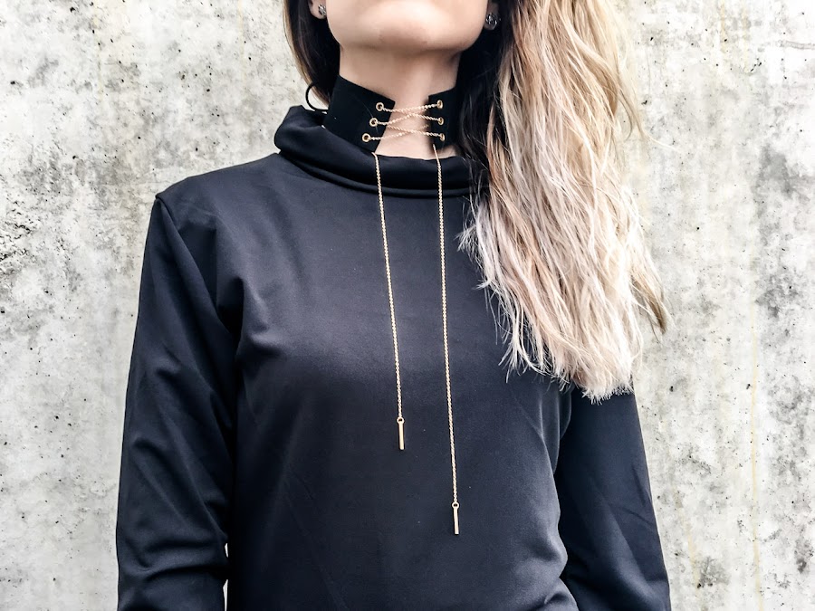 Yo esta vez, lo he combinado con unos botines de plataforma y taconazos con una cremallera dorada y un choker de terciopelo y cadena de ZAFUL