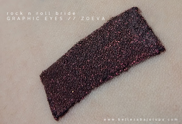 Es el "tonazo" de toda la gama, en mi humilde opinión. Se trata de una base negra con un subtono rojizo. O viceversa. Tiene destellos rojizos y plateados, depende de cómo incida en el párpado la luz. Sienta brutalmente bien en ojos verdes y marrones, los destaca muchísimo. El brillo no se desprende para nada, es muy cómodo de aplicar y es muy útil como base para sombras rojizas o berenjena que no sabemos cómo usar sin que vuelvan el ojo enfermizo o cansado.