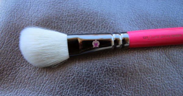 Tenía muchas ganas de tener esta brocha y cuando la vi en este set me alegré muchísimo. Tiene corte plano y yo la uso para el contorno sobre todo, a veces para el iluminador también y es perfecta para esas dos cosas, se trabaja fenomenal y es muy precisa a la hora de contornear el rostro.127 LUXE SHEER CHEEK